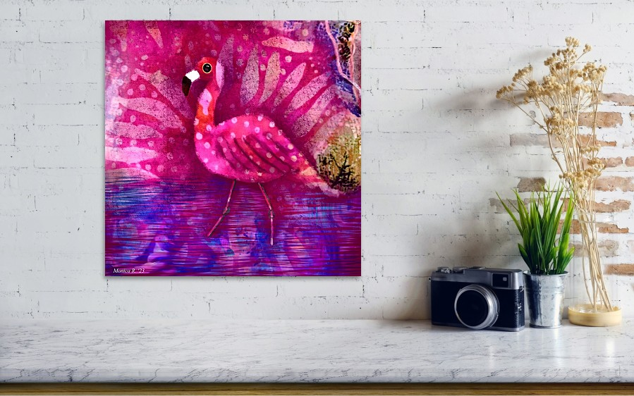 Whimsical Pink Flamingo Abstract Digital Art Print