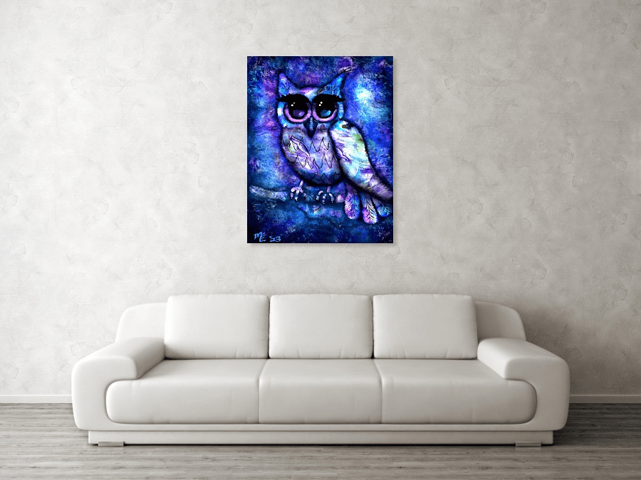 I created this in my digital art program. The owl was painted freehand with a mouse and various brushes and color; I used layers of my own abstract art to get some of the designs. It took a few enjoyable hours of trying this and that to get a look I liked.